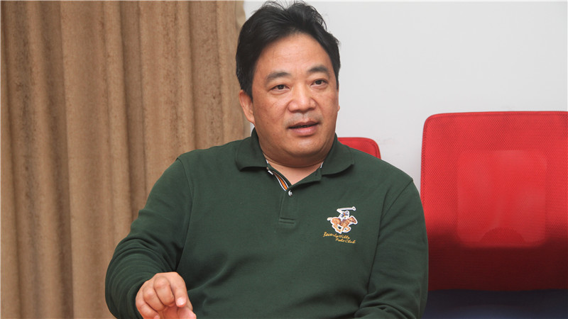 图为青蛙王子董事长李振辉介绍企业发展